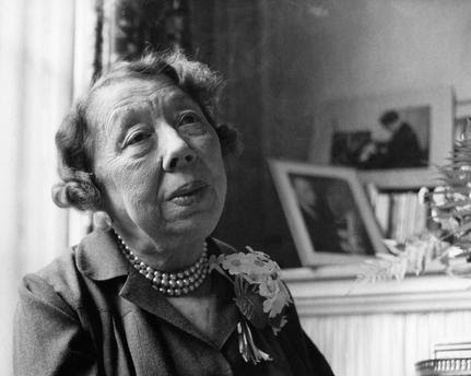 French musician Andrée Vaurabourg in black and white Vaurabourg-Honegger was a distinguished French pianist and teacher. She married Swiss-French composer Arthur Honegger and combined performance with pedagogy throughout her career.