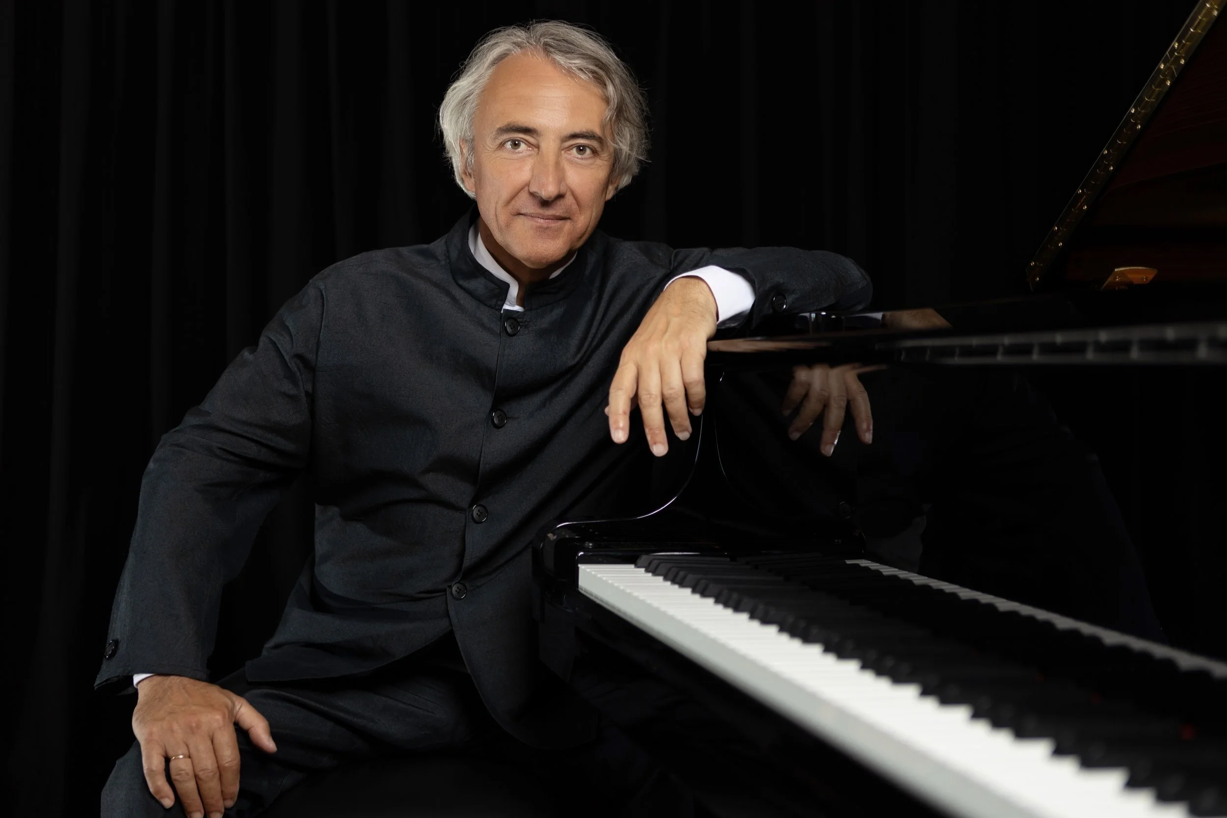 Known for intense musicality and willingness to reinterpret works daringly, she's been compared to Glenn Gould. Grimaud is also a committed wildlife conservationist, founding the Wolf Conservation Center in New York. She experiences synesthesia, seeing music as color. Her recordings span Beethoven, Brahms, Rachmaninov, and contemporary composers like Valentin Silvestrov. Jean-Yves Thibaudet wearing a patterned jacket and standing by a grand piano Thibaudet has earned recognition as one of the world's finest pianists through elegant musicality and insightful interpretations. Born in Lyon, he entered the Conservatoire de Lyon at five and made his public debut at seven. He studied with Aldo Ciccolini at the Paris Conservatory.
