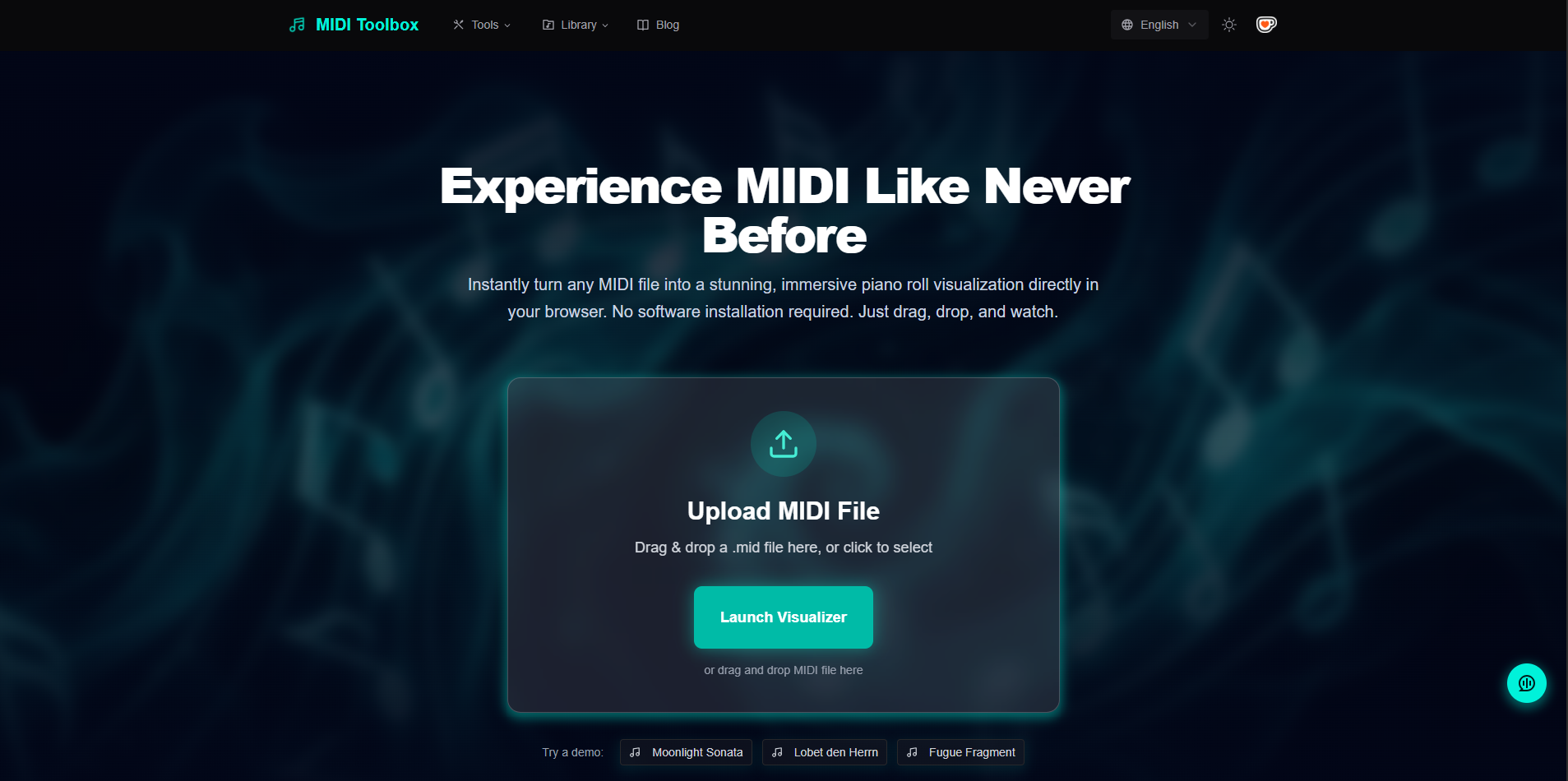Best for:Multi-track visualization with track filtering, zoom, and note inspection.It explicitly states it’s fast, free, runs locally, and says it does not store/analyze MIDI files on servers.